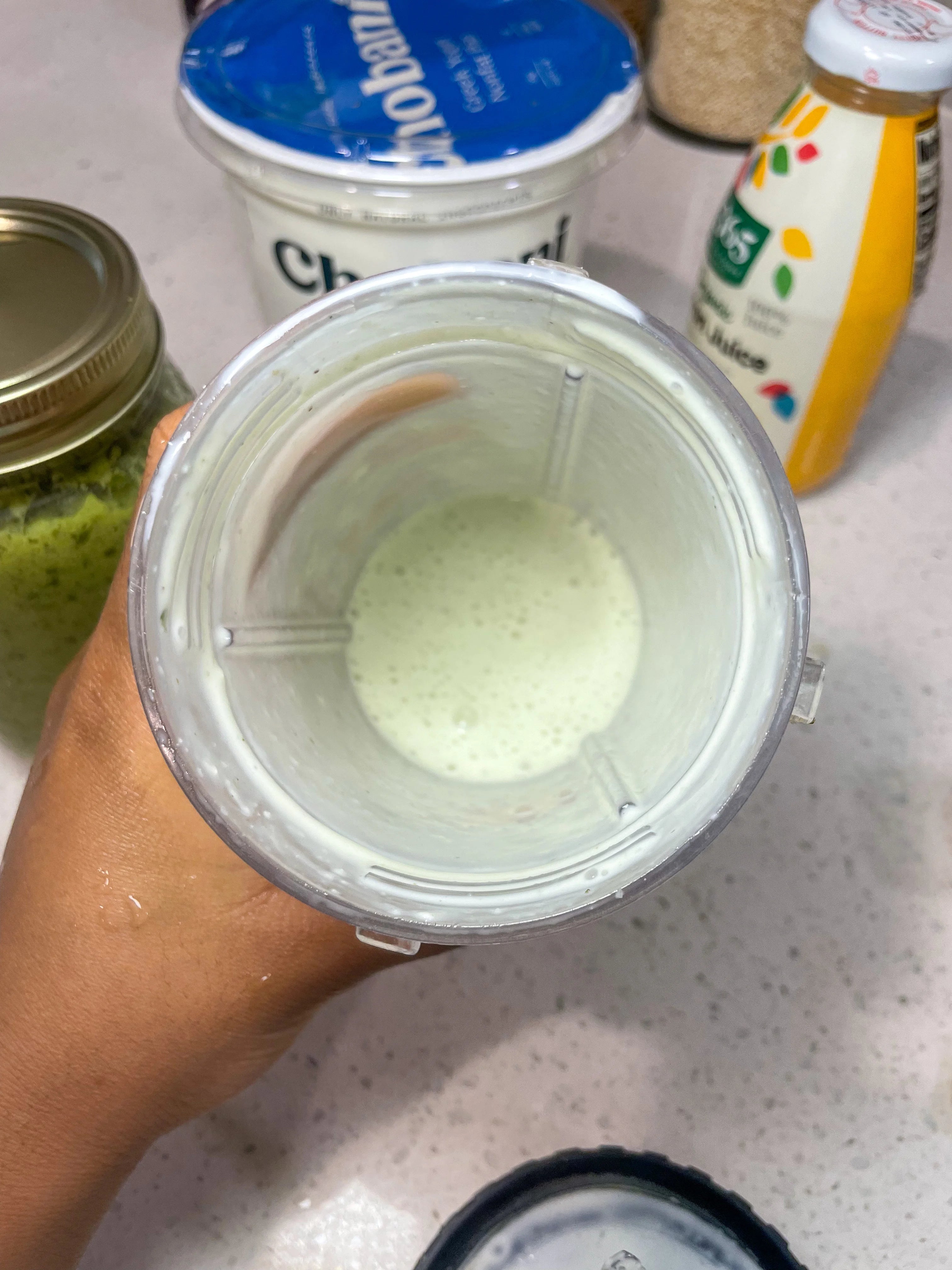 ○ Option 2 (Thinner Sauce): Blend everything together, including the Greek yogurt, for a smoother, more liquid consistency.